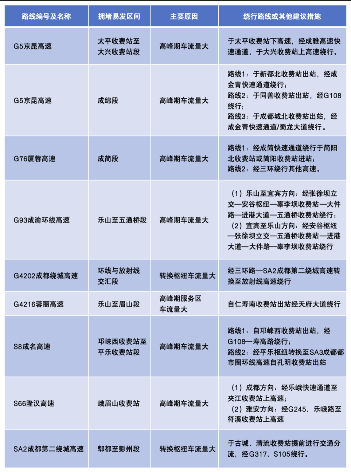 元旦假期临近,四川又将迎来一波出行热。根据预测数据,全省高速公路总流量将达到873.1万辆次,易拥堵路段包括成都绕城环线及其放射线、雅安、眉山和乐山局部路段及易受冰雪影响路段。需要提醒的是,元旦假期高速公路不免费。